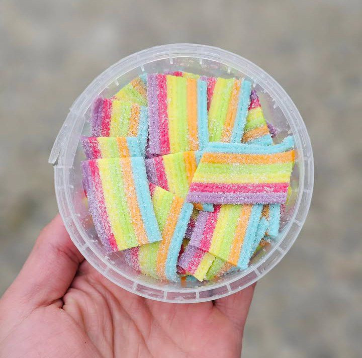 پاستیل ورقهای رنگینکمان یکی از پرطرفدارترین مدلهای پاستیل ترش است که با رنگهای شاد و متنوع خودش، جذابیت خاصی دارد. این پاستیل به صورت نواری و ورقهای تولید میشود و روی آن لایهای از شکر ترش پاشیده شده که طعم ترش و هیجانانگیزی به آن میدهد.