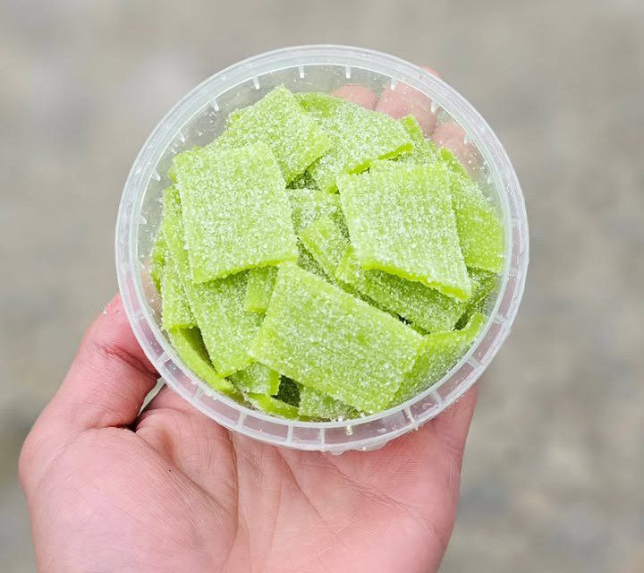 طعم خاص و دلنشین سیب سبز در قالب پاستیل نواری ترش، انتخابی عالی برای کسانی است که به مزههای میوهای علاقه دارند. این پاستیل با رنگ سبز جذاب و روکش شکر ترش، هم خوشمزه است و هم ظاهر زیبایی به میز خوراکیها میدهد.